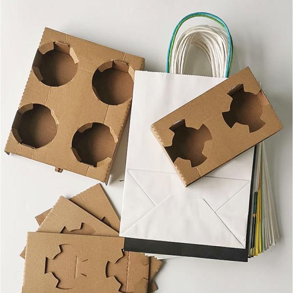 Disposable Cup Holder for Hot or Cold Drinks 2cups 4 Cups Drink Carrier with Handle Kraft Paperboard Coffee Cup Holder Images |